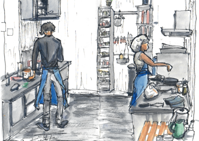De cette dynamique extrêmement bienveillante naissent la confiance en soi et les responsabilités. Ici, tout ou presque est pensé et réalisé collectivement. Du planning jusqu’aux activités, les jeunes ont leur mot à dire et participent aux décisions. Pas étonnant qu’ils soient autant motivés. Astucieux, audacieux ! L-Audace, c’est enfin des intitiatives qui voient le jour. Point d’honneur est donné à l’essai, à l’expérimentation, aux erreurs, plus importants que le résultat. Alors moi aussi, je me sens en confiance, suffisamment pour lancer des projets – trois en sept semaines. On me laisse même la possibilité de faire des petits croquis d’observation, à moi qui ne peux m’empêcher de toucher un crayon. Quoi de mieux pour un stage.